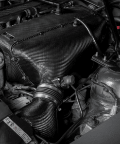 Au cœur du système se trouve le boîtier Venturi (brevet en instance) d’Eventuri, fabriqué en fibre de carbone pré-imprégnée de haute qualité. Sa conception favorise un flux d’air laminaire et régulier du filtre au plénum, réduisant les turbulences et optimisant le rendement volumétrique. La configuration hybride de la boîte à air associe un conduit d’admission étanche à une prise d’air optimisée, garantissant un apport continu d’air ambiant froid quelles que soient les conditions de conduite.
