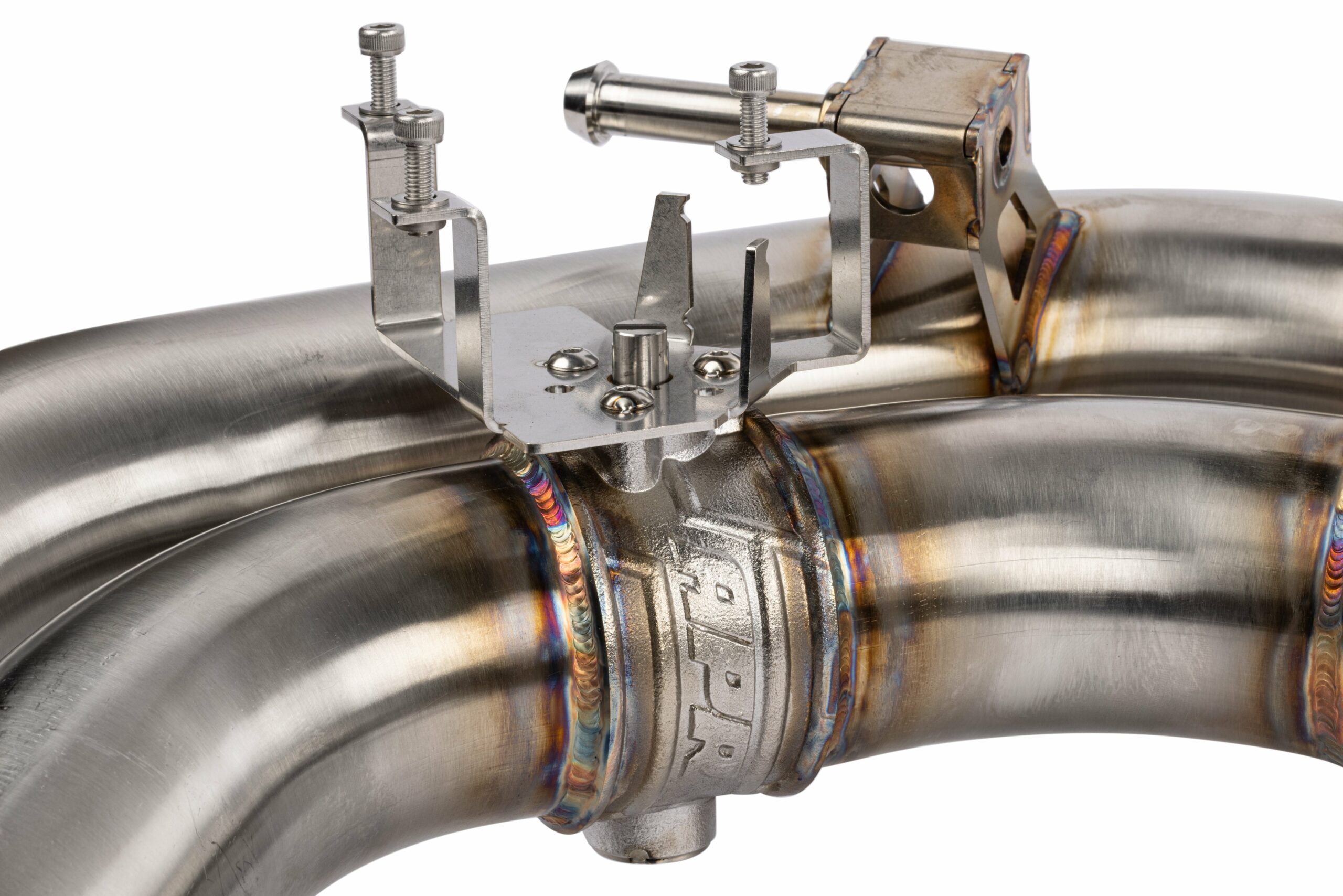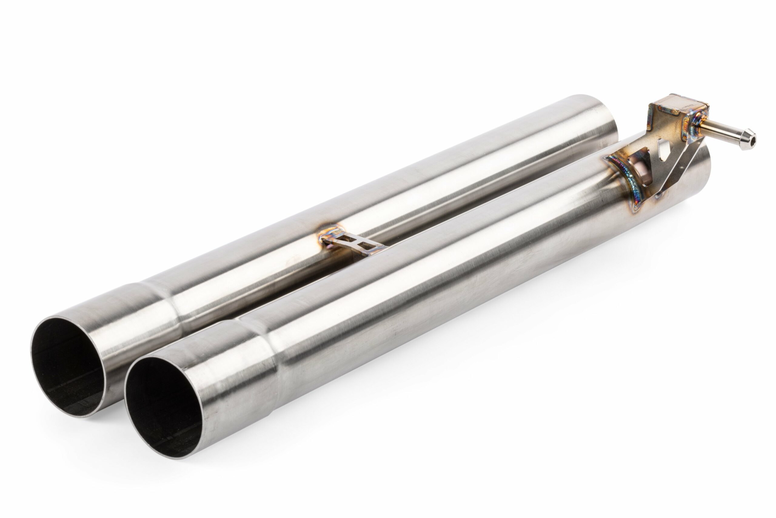 Les deux conduits d’échappement de 2,5 pouces, pliés au mandrin, offrent un flux ultra-fluide, évacuant les gaz d’échappement de manière uniforme par le système à quatre sorties, tout en offrant une esthétique soignée sous le pare-chocs arrière. Nos boîtiers de soupapes moulés permettent d’installer les actionneurs de soupapes électroniques d’origine, conservant ainsi le fonctionnement des soupapes d’origine pour des niveaux sonores variables. Enfin, nos embouts d’échappement ovalisés noir diamant de 170 x 112 mm complètent le système, ajoutant une touche d’élégance inspirée des RS à l’arrière du véhicule.