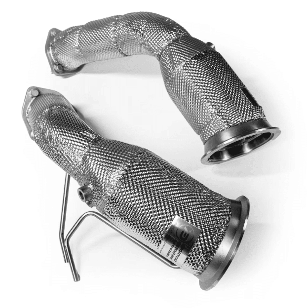 Fabriqués à la main en acier inoxydable de la plus haute qualité, tous les downpipes Power Division sont isolés afin d’éviter la surchauffe des composants environnants. Conçus pour s’intégrer parfaitement entre les turbocompresseurs et l’échappement central, ces downpipes remplacent les convertisseurs catalytiques d’origine, qui limitent le flux d’air. Pour répondre aux préférences de chacun, les downpipes Power Division sont disponibles en trois versions.