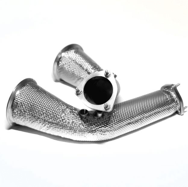 Fabriqués à la main en acier inoxydable de la plus haute qualité, tous les downpipes Power Division sont isolés afin d’éviter la surchauffe des composants environnants. Conçus pour s’intégrer parfaitement entre les turbocompresseurs et l’échappement central, ces downpipes remplacent les convertisseurs catalytiques d’origine, qui limitent le flux d’air. Pour répondre aux préférences de chacun, les downpipes Power Division sont disponibles en trois versions.