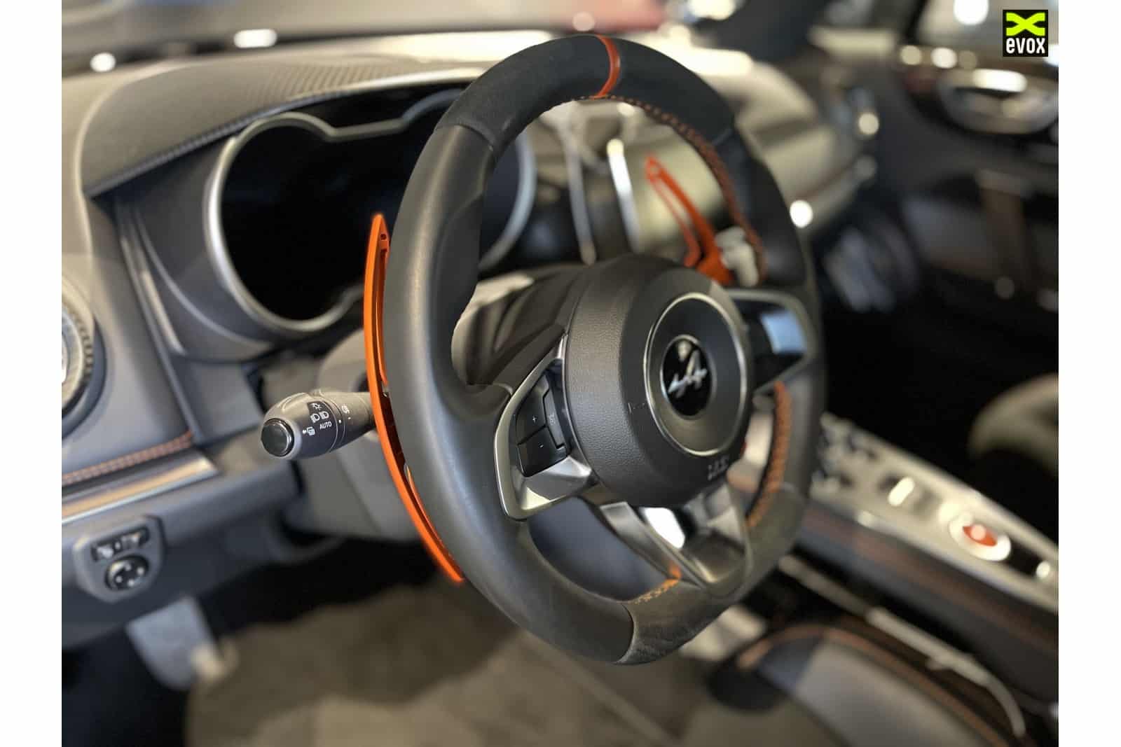 Les extensions de palettes EVOX by MP-Rezeau ont un design sportif à l’image du modèle emblématique de l’alpine A110 avec une taille plus haute de 2 cm et plus basse de 6 cm.