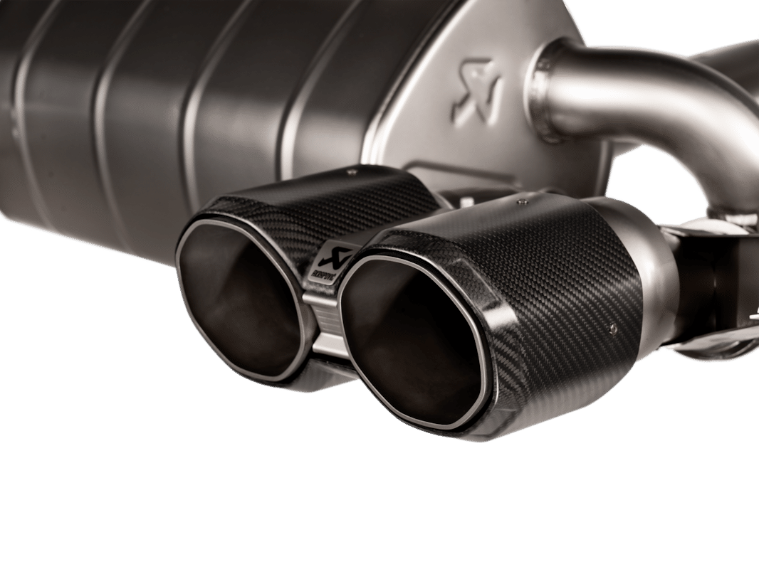 Ce produit est entièrement fabriqué en titane de haute qualité et comprend des pièces spécifiques, notamment deux valves (une de chaque côté du silencieux) et deux réflecteurs acoustiques. Le boîtier des valves et les collecteurs sont coulés dans notre fonderie de titane interne. Deux designs de sorties d’échappement sont proposés : la forme octogonale novatrice, inaugurée sur les BMW M3/M4, ou le design plus traditionnel et classique. Les doubles sorties d’échappement sont dotées de manchons extérieurs en fibre de carbone, fabriqués artisanalement. L’utilisation de matériaux légers permet d’obtenir un échappement pesant seulement 7,3 kg (32,7 %) de moins que l’échappement d’origine.